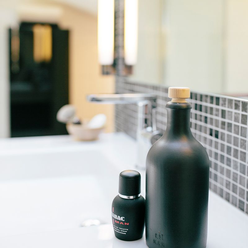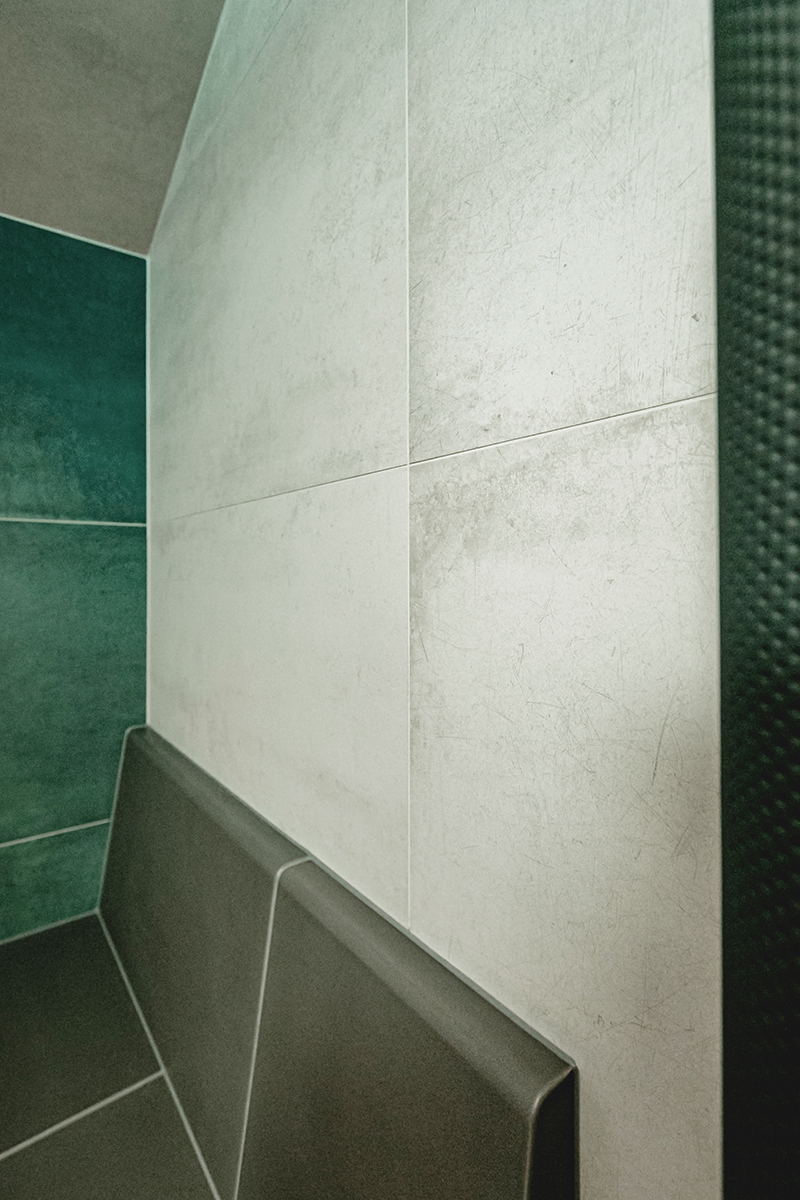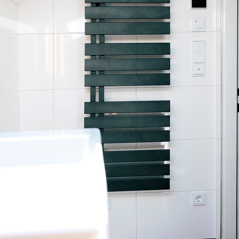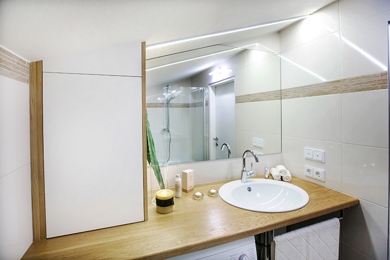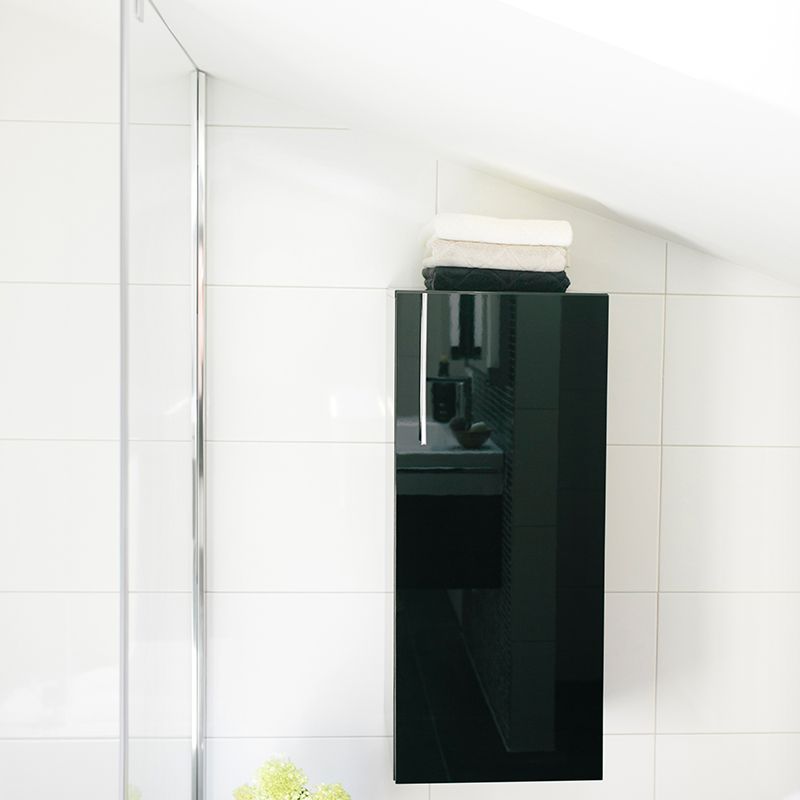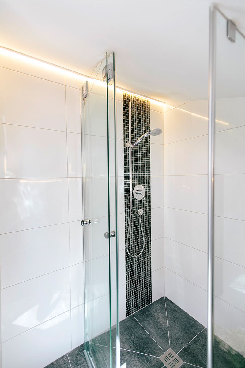 Badsanierung: Männerbad Metalloptik schwarz Dachschräge