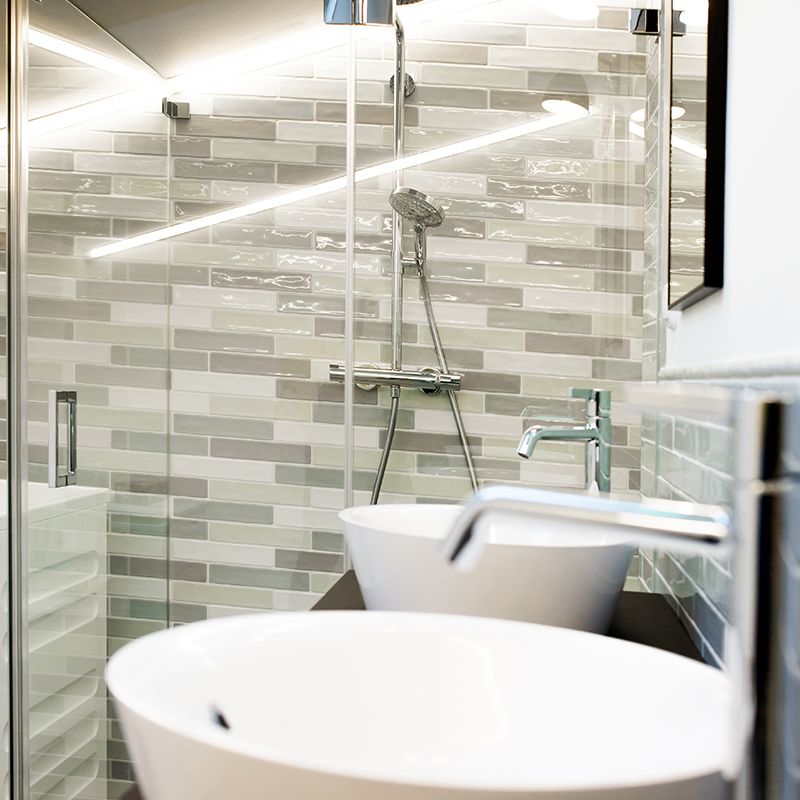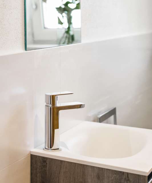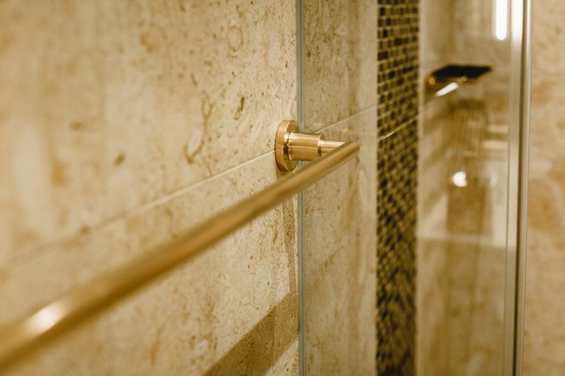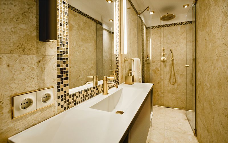 Badsanierung: Dornbracht gold Mosaik Standfest